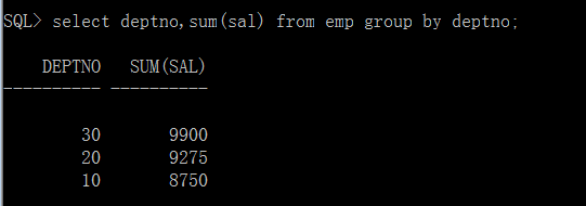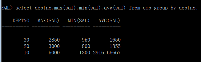 Select deptno,max(sal),min(sal),avg(sal) from emp group by deptno;