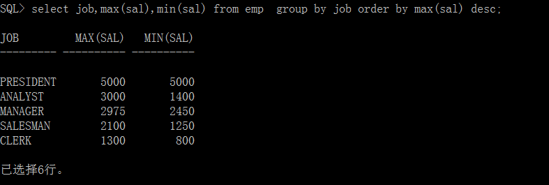 使用聚合函数/分组函数:max,min,avg,count,sum