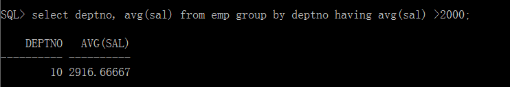 select deptno, avg(sal) from emp group by deptno having avg(sal) >2000;