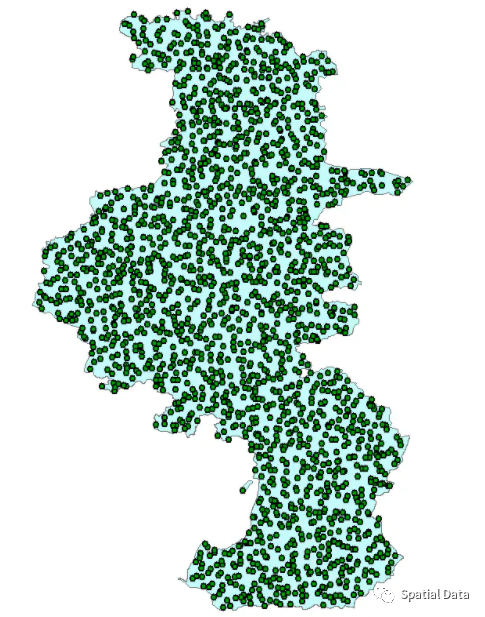 CREATE TABLE nanjing_points ASSELECT (ST_Dump(ST_GeneratePoints(geom, 2000))).geomAS geom FROM nanjing;