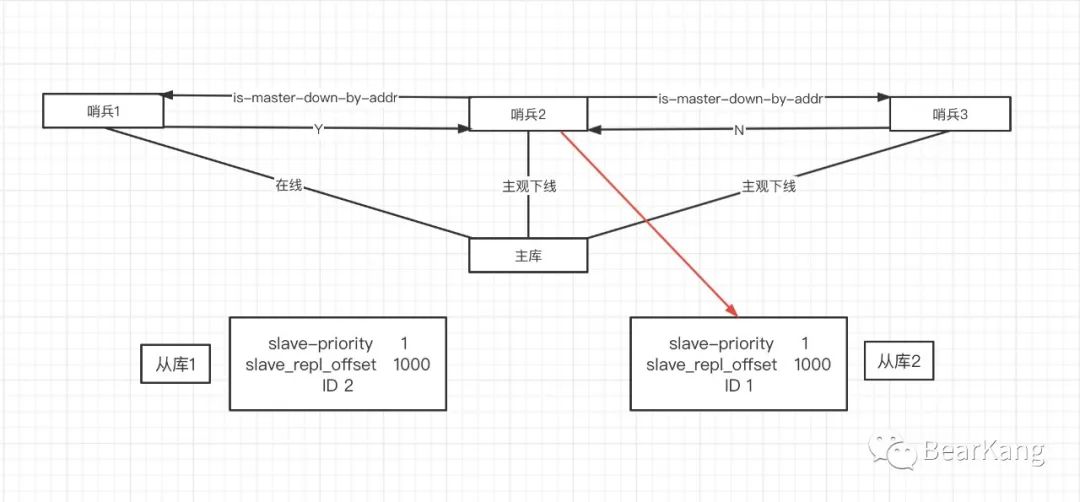 主库的选择需要按照一定的筛选规则。从库必须当前是在线且最近网络状态良好。网络状态可以根据是否经常和主库断连判断,防止某台机器刚选上主库就宕机,导致又需要重新切换主库。可以根据down-after-milliseconds * N,表示down-after-milliseconds是认定主从断连的时间,N是断连次数阈值,如果超过阈值,则认为该从库经常断连,不适合做主库。在符合条件的从库中,按照从库优先级,优先级最高的优先作为主库,如果优先级有并列最高的情况下,那么比较从路同步进度(上一篇中的从库复制偏移量),即数据最全的优先作为主库,如果复制进度仍然还有并列的,那么就是id最小的从库成为主库,id是唯一的,不会有并列的情况。