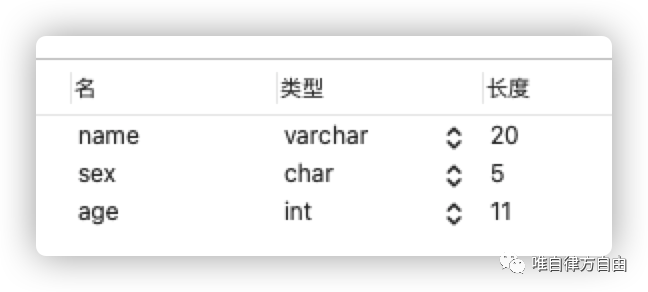配置 student 表字段,如:姓名 name - vachar 类型、性别 sex - char 类型、年龄 age - int 类型