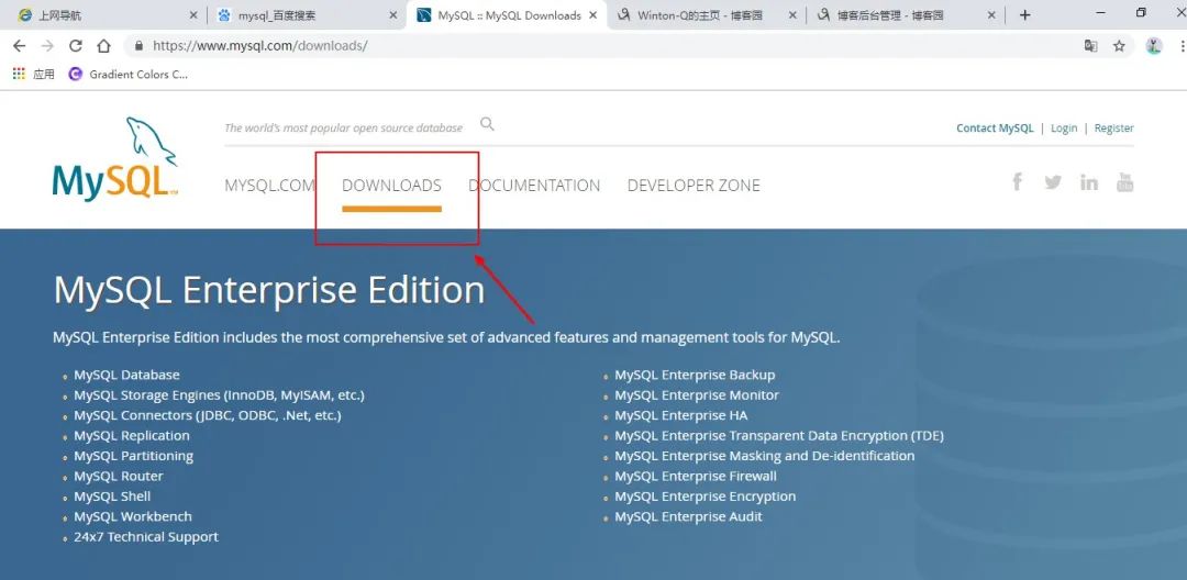 ①进入官网(地址:https://www.mysql.com)后,点击"Download",然后页面往下拉