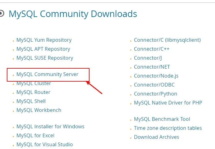 ②接下来看到的页面是这样的,红色框框的链接就是mysql社区版,是免费的mysql版本,然后我们点击这个框框的链接:↓