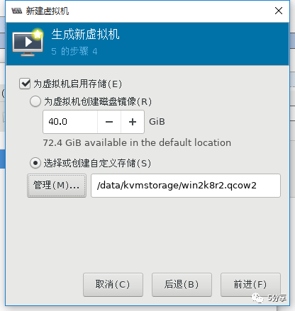 [root@localhost ~]# mkdir -p data/{iso,kvmstorage}[root@localhost ~]# cd data/iso/[root@localhost iso]# ll总用量 4217748-rw-r--r-- 1 root root 950009856 11月 22 15:24 CentOS-7-x86_64-Minimal-1804.iso-rw-r--r-- 1 root root 3368962048 3月 23 2012 cn_windows_server_2008_r2.iso