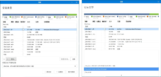安装操作与 BIOS 方式是一样的,需要注意的不同点在于: