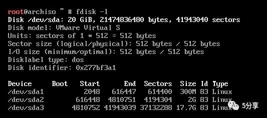 然后通过命令fdisk -l 查看硬盘,这里安装到/dev/sda。