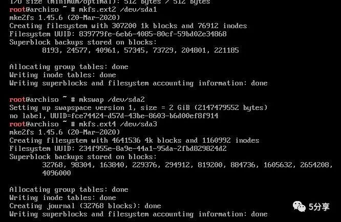 mkfs.ext4 dev/sda3
