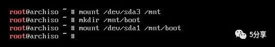 mount dev/sda3 mntmkdir mnt/bootmount dev/sda1 mnt/boot