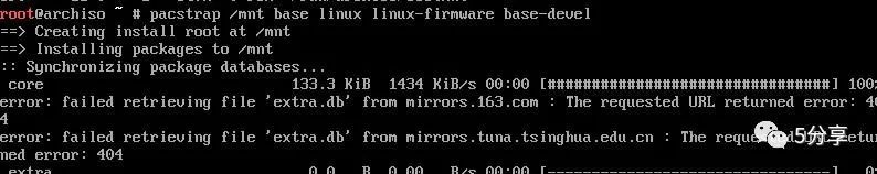 开始安装系统到/dev/sda1也就是挂载点/mnt