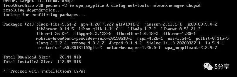 pacman -S iw wpa_supplicant dialog net-tools networkmanager dhcpcd