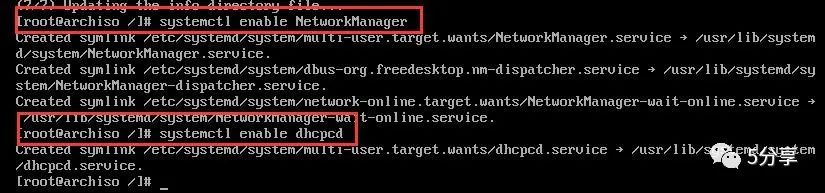 systemctl enable NetworkManagersystemctl enable dhcpcd
