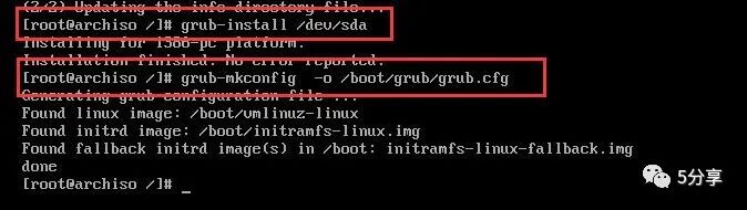pacman -S grubgrub-install /dev/sdagrub-mkconfig -o /boot/grub/grub.cfg