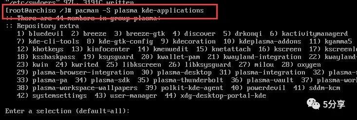 pacman -S plasma kde-applications