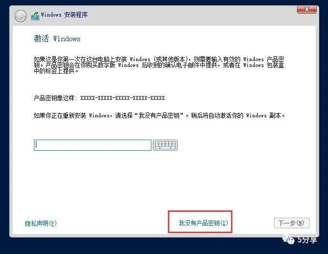 如果没有产品密钥可以选择【我没有产品密钥】安装完再激活。