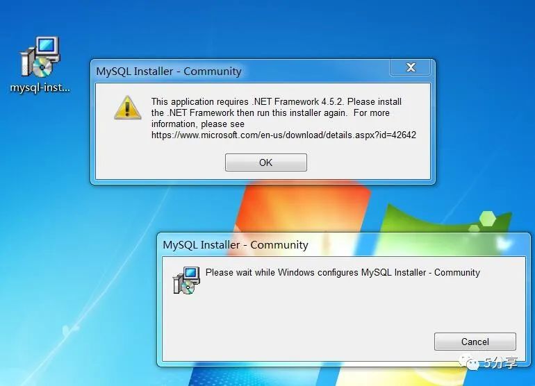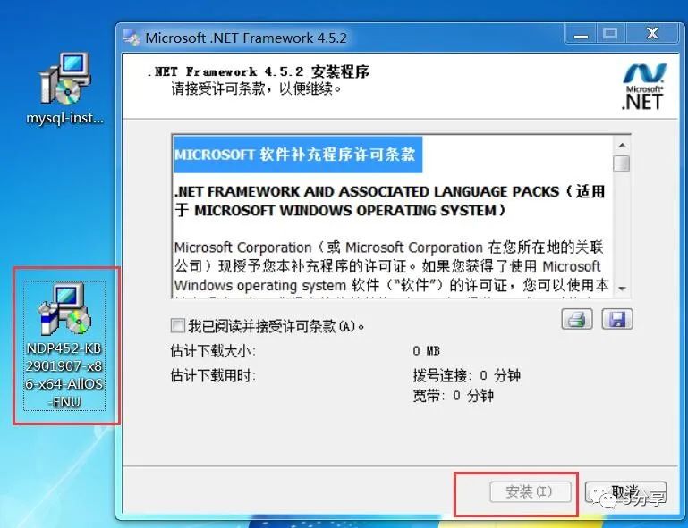 点击MYSQL安装文件提示需要安装.net framework 4.5.2