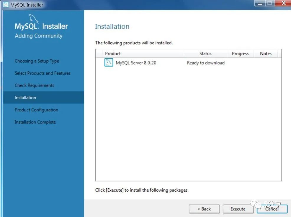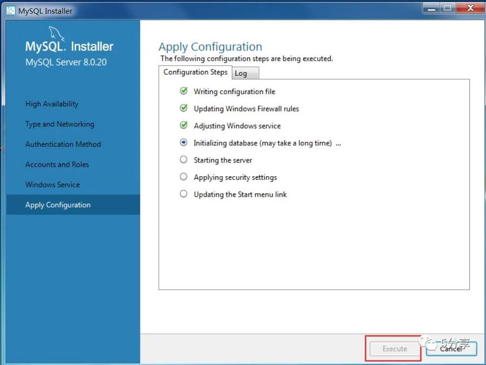 点击【execute】,等待mysql下载。