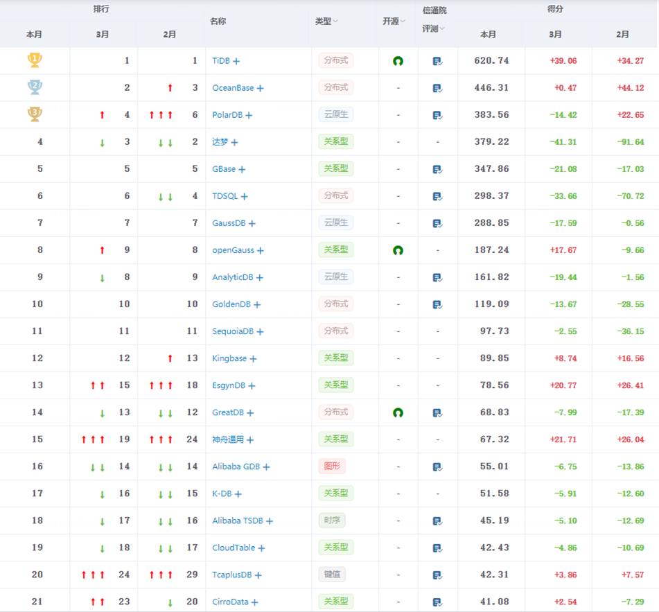 这张图是从国内的一个数据库排名网站上截的,都是现在国内的数据库产品。我们可以看到这张图里,有包括腾讯、阿里、华为这种大厂的数据库产品,也包括目前开源比较流行的产品,还包括一些传统的厂商产品,可以说真的是百花齐放的时代,这在五六年前都是不可想象的。