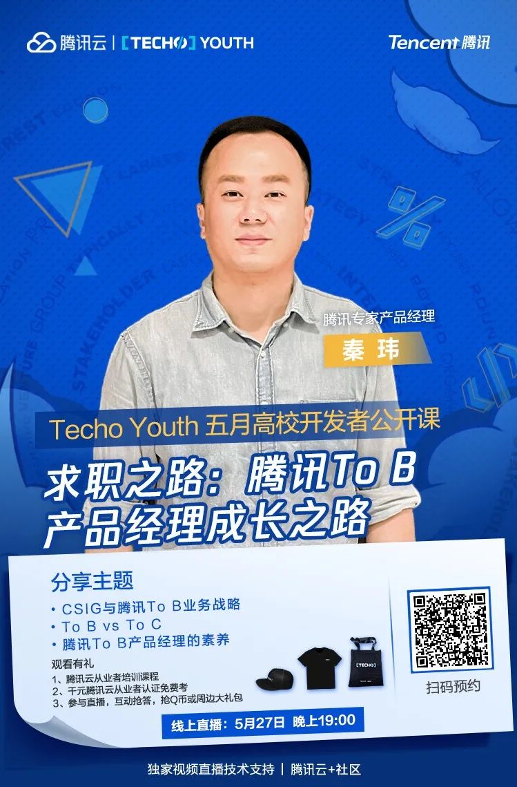 5月27日(明晚)19点,腾讯云数据库专家产品经理秦玮分享《求职之路:腾讯To B产品经理成长之路》,扫描下方海报即可报名预约~