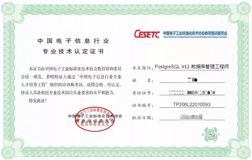 《中国PostgreSQL认证考试技术能力证书》查询网址:www.postgresqlchina.com