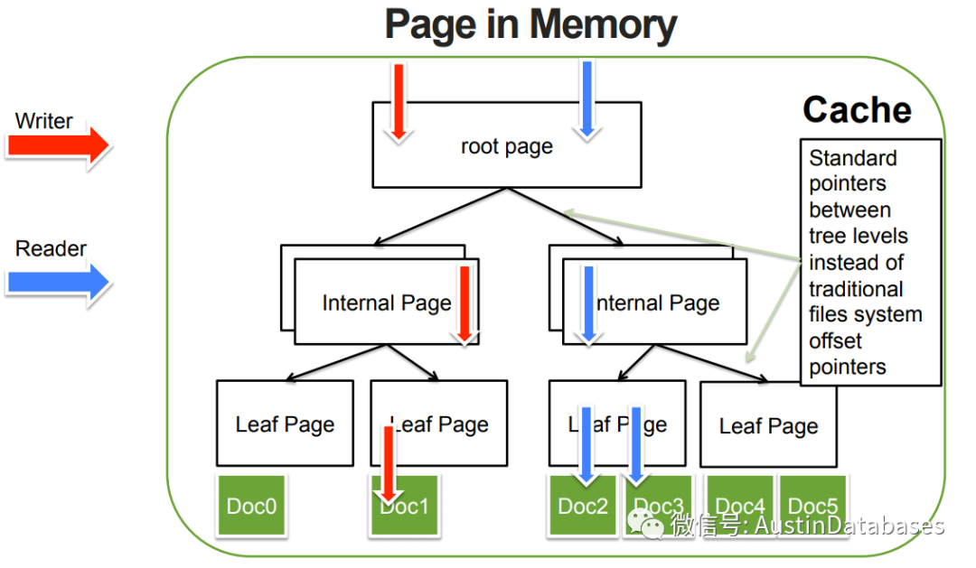 MONGODB 的数据库引擎WiredTiger, 使用PAGE 页的方式,来存储数据,但是磁盘和内存的页面的结构是不一致的, 内存的页面的结构为B-TREE 结构。