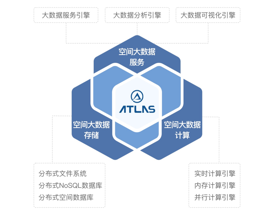 GEOWAY Atlas空间大数据基础框架是对传统“数据库+GIS”技术模式的升级和替代,在多种存储和计算为一体的混合架构下,融合多种算力与智力,赋能空间数据的处理、分析和可视化,提供超千万景、50PB级影像数据存储管理,超百亿矢量要素存储、超千亿瓦片存储能力;具有亿级图斑叠加分析分钟级出结果、亿级图斑汇总统计的强大计算能力;以及全国矢量地图、影像动态地图极速发布,实时更新等服务能力,满足新一代互联网条件下空间信息智能化应用服务需求。