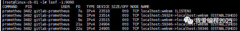 上述内容提示存在端口冲突,9090端口已经被占用。执行如下指令,查看改端口的占用情况。