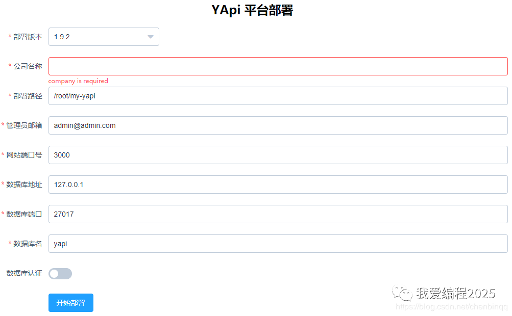 使用Yapi提供的 yapi-cli 工具,部署 YApi 平台是非常容易的。执行 yapi server 启动可视化部署程序,输入相应的配置和点击开始部署,就能完成整个网站的部署。部署完成之后,可按照提示信息,执行 node/{网站路径/server/app.js} 启动服务器。在浏览器打开指定url, 点击登录输入您刚才设置的管理员邮箱,默认密码为 ymfe.org 登录系统(默认密码可在个人中心修改)。