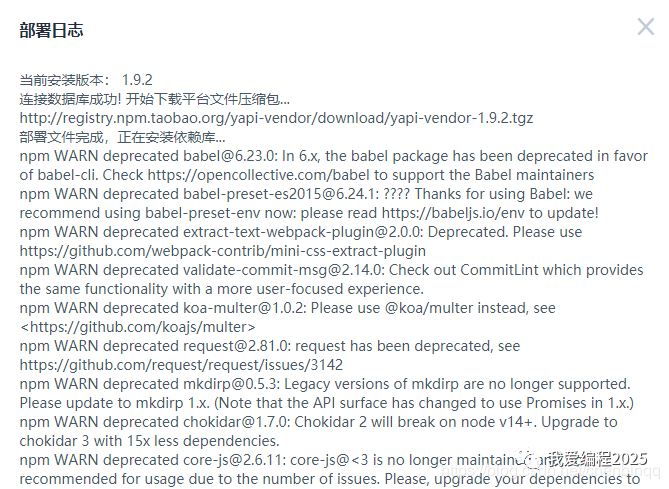 点击“开始部署”按钮后,出现部署日志弹出框,如下图