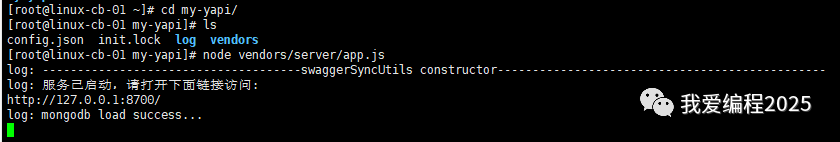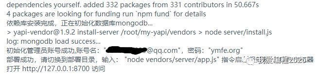 切换到部署路径/root/my-yapi,执行如下指令来启动服务器