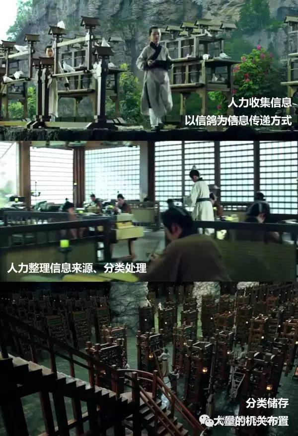 当今时代的计算机、互联网只是简化并加速信息收集、整理、分析、计算的工具,在这个工具的帮助下人们可以更轻易的获得更多以前根本无从想象的数据,而数量之大也大大超越了历史任何时期,整个时代是一个依靠信息创造价值的时代。而在古代,在人们没有计算机之时,大数据并不是不存在,而是由于这一个活儿需要耗费大量的人力财力,一般人无法承受,因为只掌握在少数人手中。以下《琅琊榜》剧照可以说明这一点。