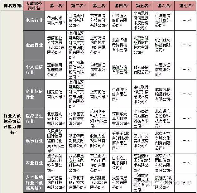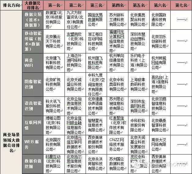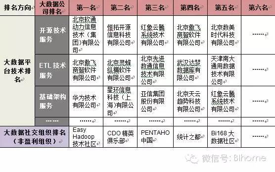 2、 2015中国大数据公司年度排名对外发布版含37个三级维度,185家大数据公司排名;