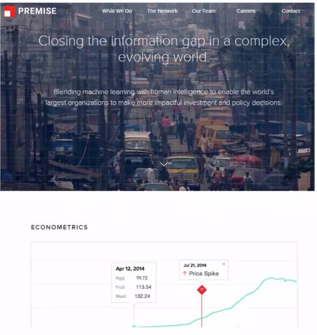 Premise Data开发了一套软件和移动设施,除了汇集线上数据,还能依靠覆盖全世界的兼职人员使用公司的移动设备来采集本地价格数据,能够每天从线下收集数以百万计的离散数据集。这些数据可以帮助客户把控各种与金融市场有关的行业,同时也能对特定区域的经济稳定性获取更加详细的数据。9PREMISE