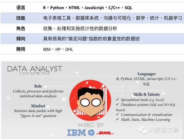 如R、Python和SQL这样的编程语言是数据分析师基本知识的一部分。和数据科学家的职位有点类似,对数据分析师来说,需要掌握广泛的技能,同时具有技术和独创性的分析知识。这个职位经常为类似HP和IBM这样的公司所需要。