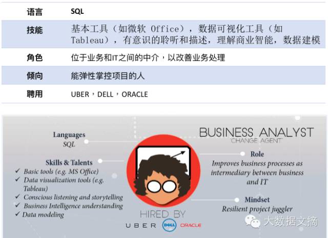 这也许是今天提到的最没有技术含量的头衔了。然而,商业分析师用他们对业务流程的深刻理解弥补了技术知识的缺乏。因此,商业分析师经常在业务员和技术专家之间扮演中间人的角色。需要这样角色的公司有Uber、Dell和甲骨文。