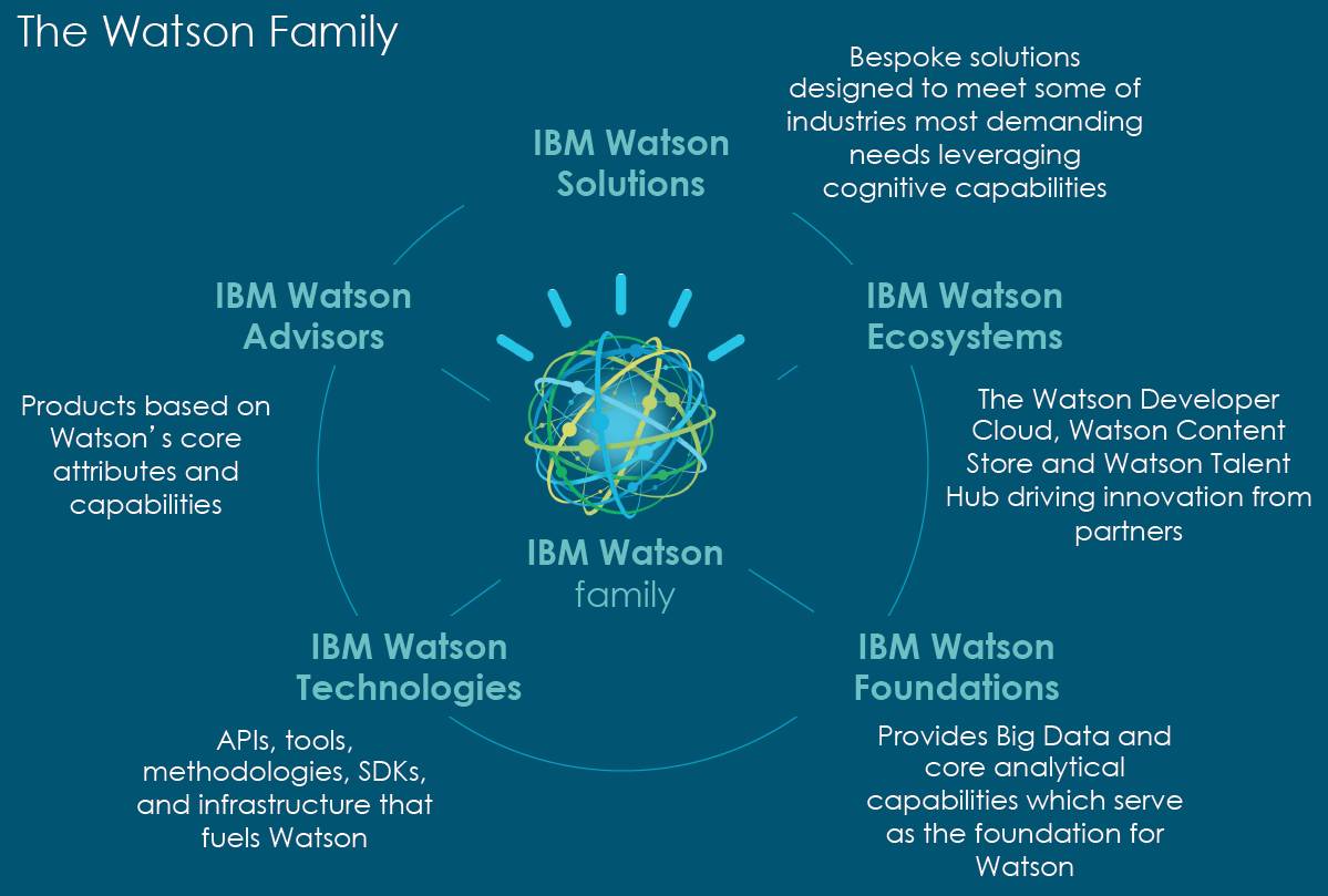 IBM的愿景中,Watson 可以细分为三种能力,每种能力对应于IBM所提供的一种特定服务: