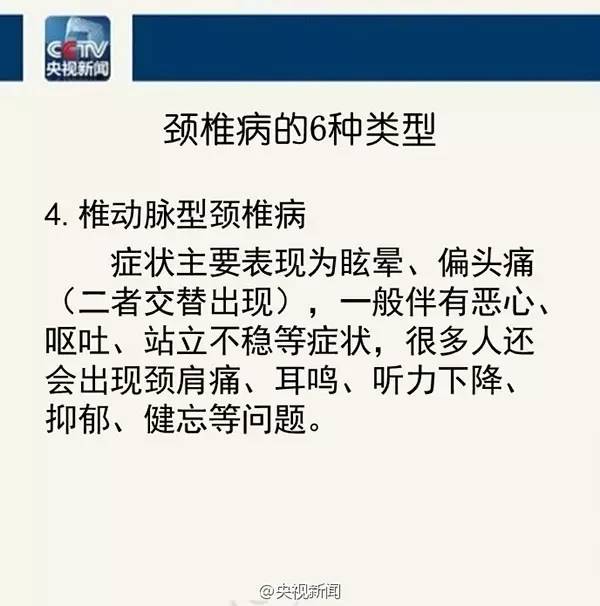 因为颈椎病分为很多类型,其中交感神经型颈椎病就会使人感觉眼胀、干涩或多泪视物不清;耳鸣、耳堵、听力下降;鼻塞、“过敏性鼻炎”,咽部异物感、口干、声带疲劳等;味觉改变等。椎动脉型颈椎病会引起偏头痛,记忆力下降,头昏失眠,严重还会使人产生抑郁的情绪。