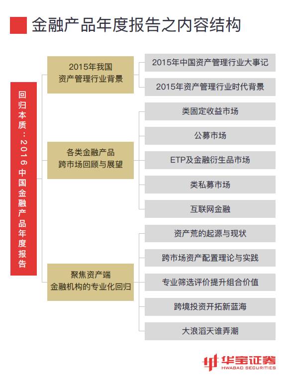 在2016年金融产品年度报告的编写过程中,华宝证券回顾了2015年金融市场的变革,深刻感受到从监管到金融机构本身对回归资产管理业务本质的诉求。未来金融向本质的回归应是多层次的: