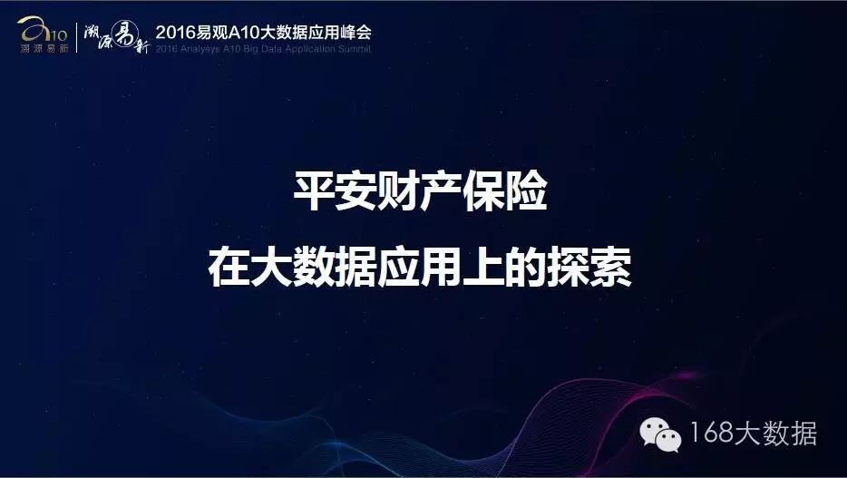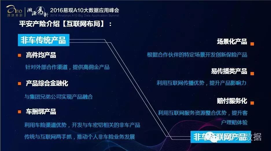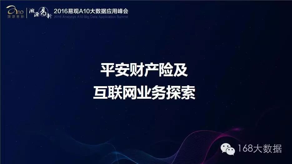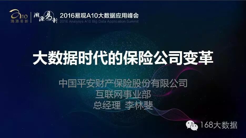 本文是中国平安财产保险股仹有限公司互联网事业部总经理 李林斐在易观A10大数据应用峰会上关于《大数据时代的保险公司变革》的主题分享。嘉宾PPT经大会主办方授权发布,未经允许,禁止转载!