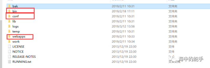 step 2:停止tomcat服务,备份旧版本如下三个文件夹(bin,conf,webapps)