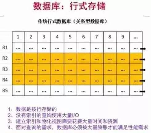 对于传统的关系型数据库,比如甲骨文的OracleDB和MySQL,IBM的DB2、微软的SQL Server等,一般都是采用行存储(Row-based)。在基于行式存储的数据库中,数据是按照行数据为基础逻辑存储单元进行存储的,一行中的数据在存储介质中以连续存储形式存在。
