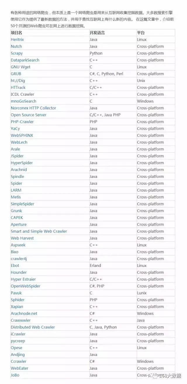 十二、推荐排名前50个开源的Web爬虫