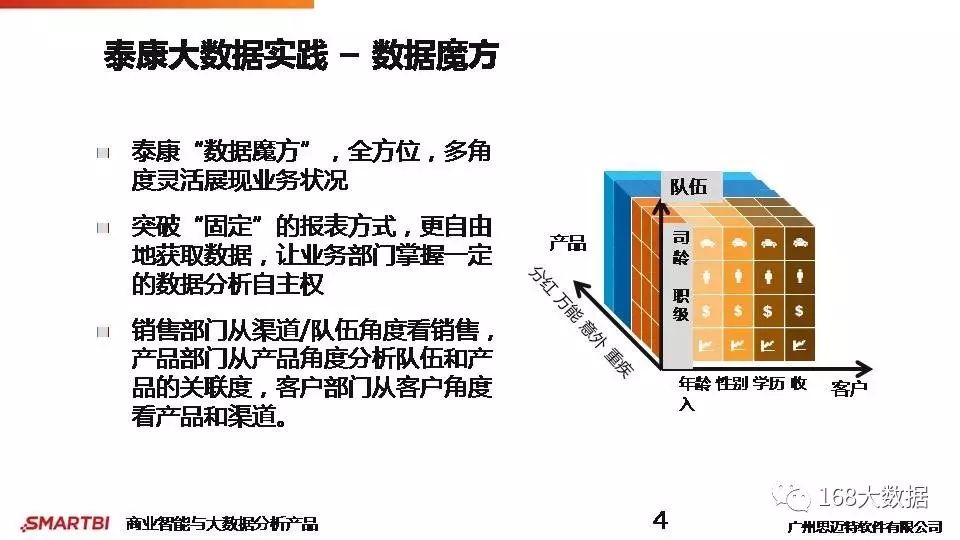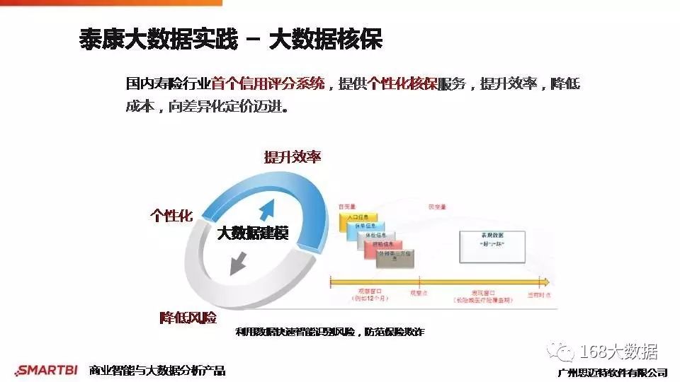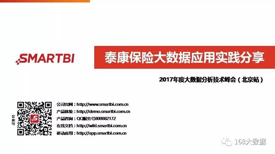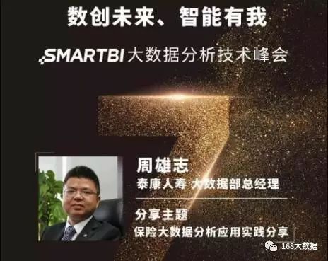 本文是泰康人寿大数据总经理周雄志在SmartBI大数据分析技术峰会上的分享,主题是《保险大数据分析应用实践分享》。据介绍,泰康人寿的数据仓库始建于2004年,在保险业界属于较为超前的应用实践。周总详细的分享了泰康人寿保险大数据分析应用实践历程。本次峰会由国内知名的大数据技术社区与产业服务平台168大数据协办,以下内容未经允许,请勿转载。