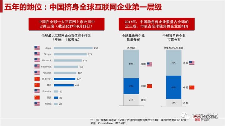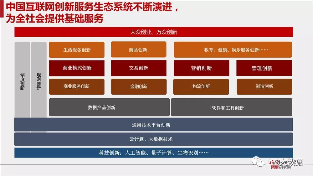 报告认为,这五年,中国互联网领域从商业创新引领发展驱动走向技术与商业双轮驱动。互联网的飞速发展,不仅为消费者带来了便捷,推动了消费需求从低端到中高端的变革,同时助力中国制造业的转型升级,给创新创业、扶贫、就业等国家和社会关注的热点问题赋予了新的内涵,更是让治理创新走向更加开放协同。