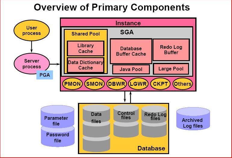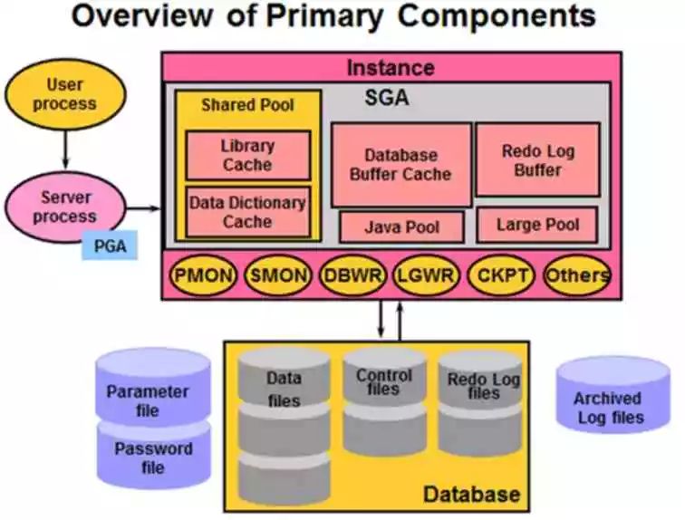 笔者在学习Oracle之前,特地先去了解了OracleDB的框架。这样对Oracle数据库有一个整体的认知,有由高屋建领地的作用。磨刀不误砍菜功吧。Oracle数据库主要由一下5部分组成: