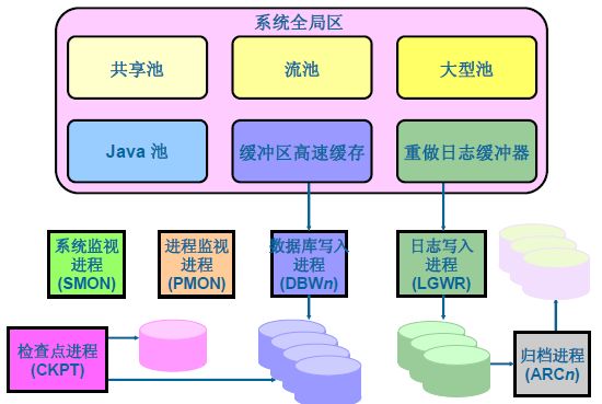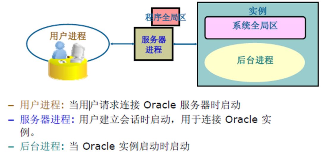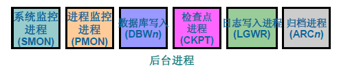 包括数据写进程(Database Writer,DBWR)、日志写进程(Log Writer,LGWR)、系统监控(System Monitor、SMON)、进程监控(Process Monitor、PMON)、检查点进程(Checkpoint Process、CKPT)、归档进程、服务进程、用户进程。