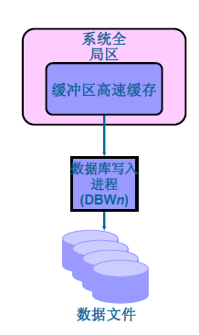 Server process连接Oracle后,通过数据库写进程(DBWn)将数据缓冲区中的“脏缓冲区”的数据块写入到存储结构(数据文件、磁盘文件)