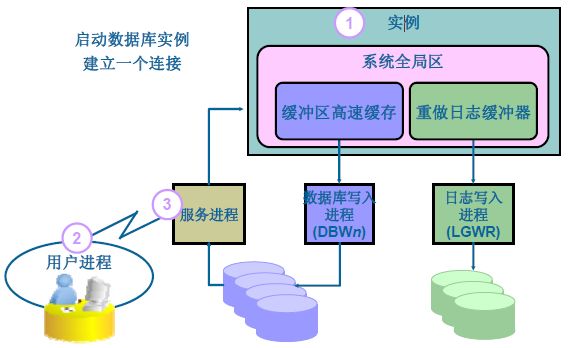 在用户访问数据库时,首先会提交请求,再分配SGA内存,创建并启动后台进程和实例,最后建立连接和会话。Oracle Server运行过程中必须启动上面的前五个进程。否则实例无法创建。