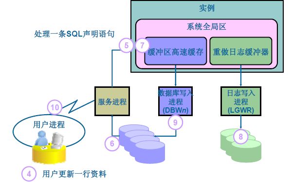 例如在更新数据时,用户执行的SQL语句不会直接对磁盘上的数据文件进行更改操作,而是首先将数据文件复制到数据库缓冲区缓存(就是说数据库缓冲区里会存放着SQL相关数据文件副本),再更改应用于数据库缓冲区缓存中这些数据块的副本。而且数据块副本将在缓存中保留一段时间,直至其占用的缓冲区被另一个数据库覆盖为止(缓冲区Size有限)。