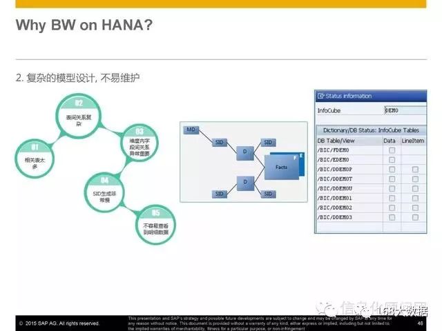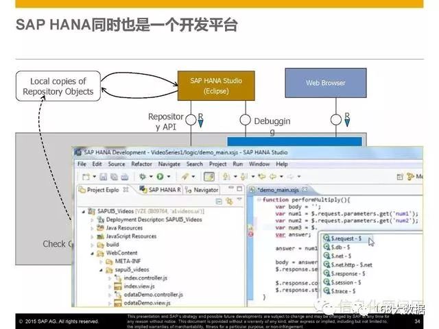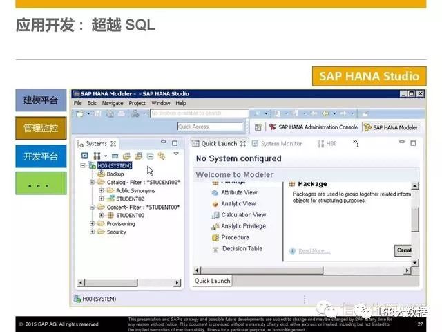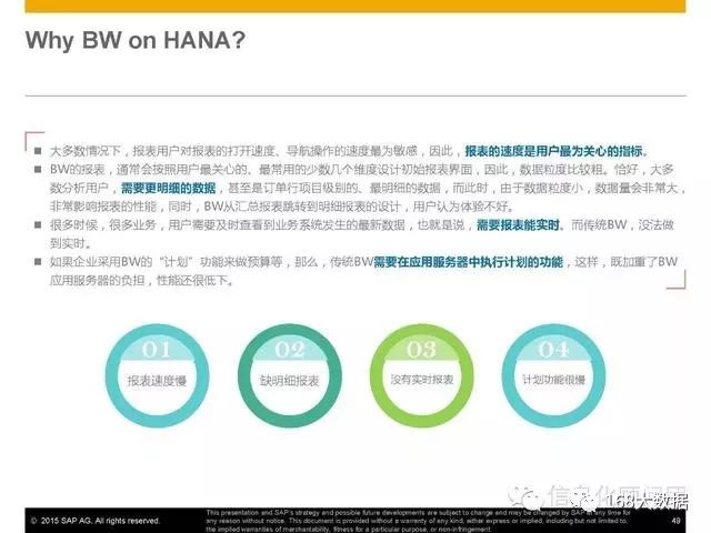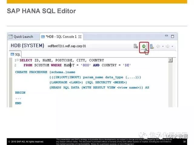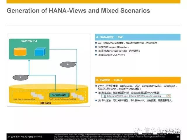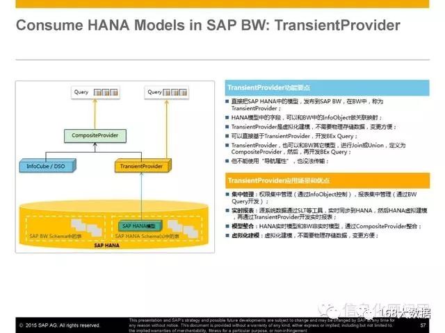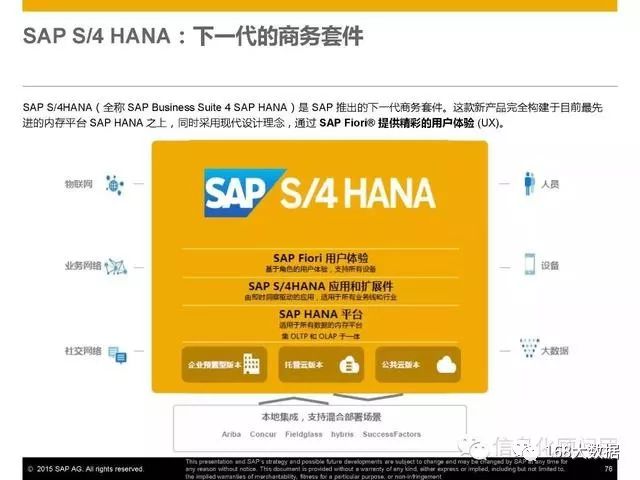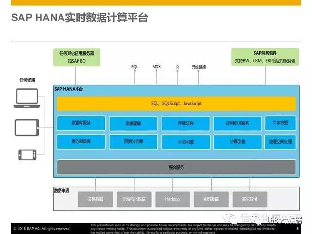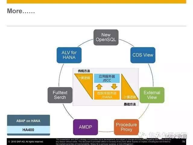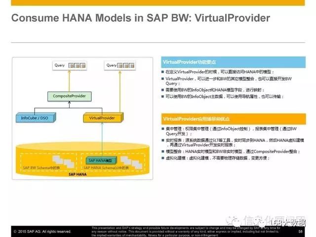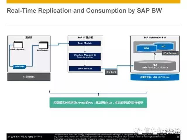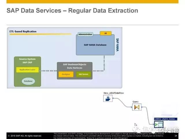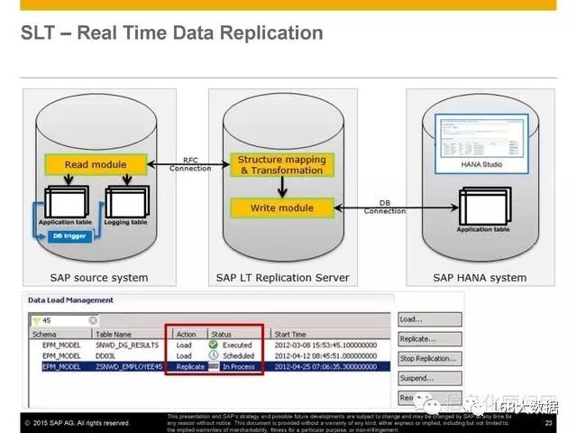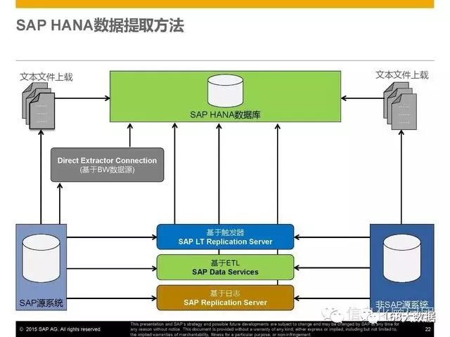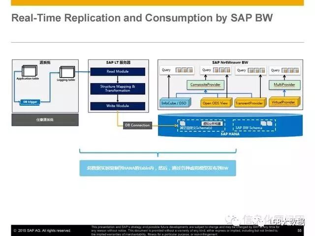 SAP HANA是一个软硬件结合体,提供高性能的数据查询功能,用户可以直接对大量实时业务数据进行查询和分析,而不需要对业务数据进行建模、聚合等。SAP内存数据库的数据并不是只在内存里,也会不停写到硬盘里,这就用到复制服务器Replication Server,包括Log-based,Trigger-based和ETL-based。这些复制服务器需要用到Sybase Replication Server、Sybase Replication Server Agent、Sybase Adaptive Server EntERPrise (ASE,适用性服务器)等,以及HANA Load Controller和BO Data Services。